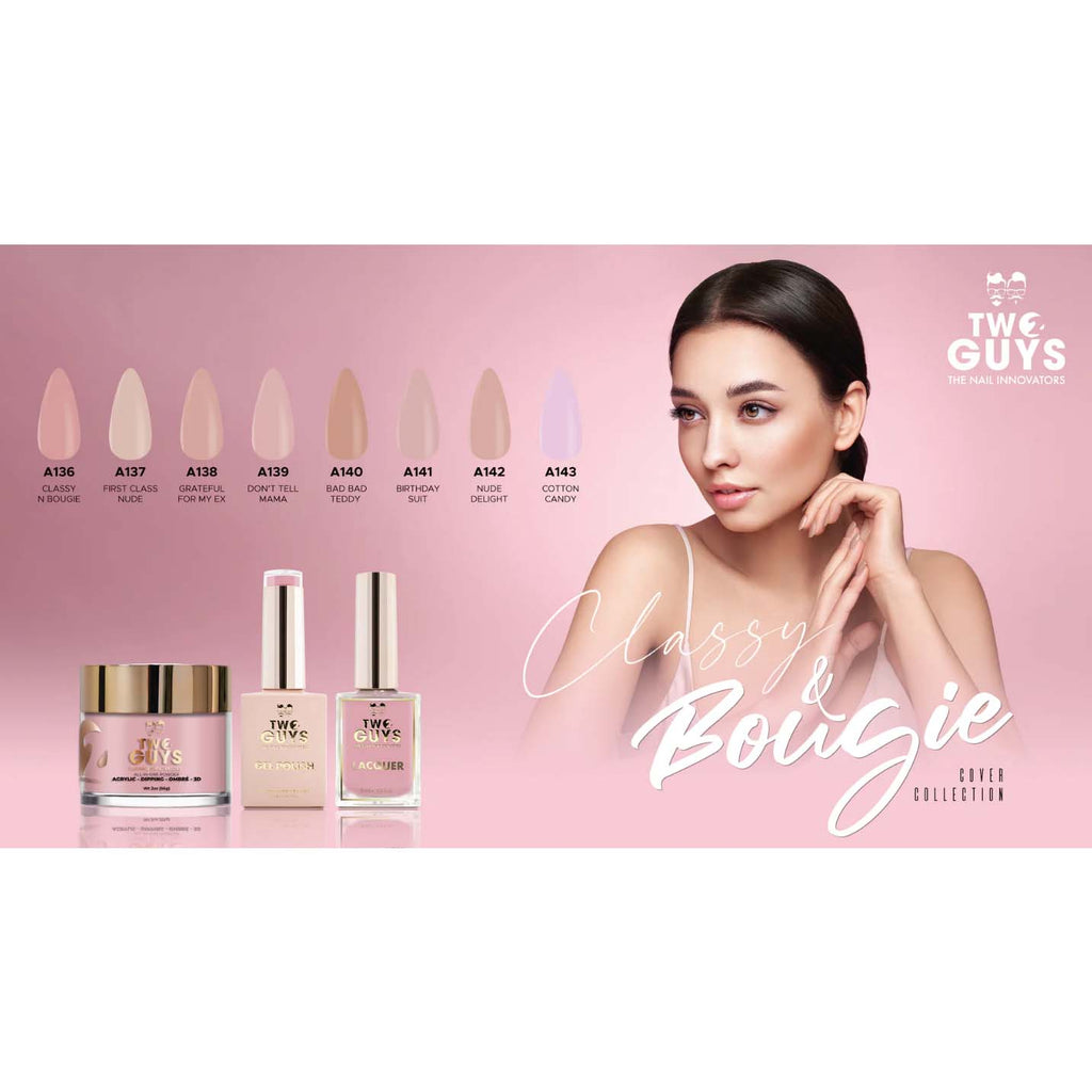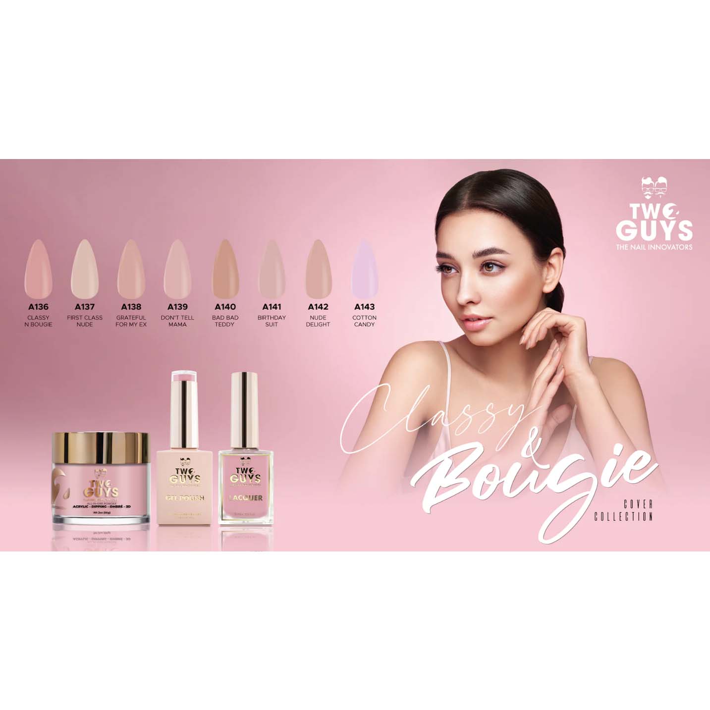 The 2Guys Trio System includes one colour with matching gel polish, nail lacquer and all-in-one powder.