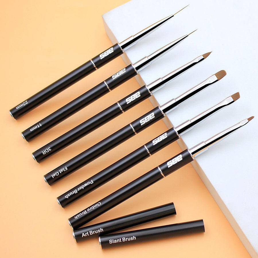 - Classics nail art brushes with various bristles sizes and shapes adapted for nail designs with gel nail polish including French nails, curves nail art, gradient nails like ombre nails and baby boomer nails, but also marble nails and other abstract nail art