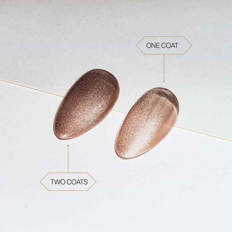 - Apply a layer of Astral Gel Couleur. If using a Cat Eye finish, use the Aprés Magnet Wand or any magnetic tool to arrange shimmers as desired. Note: Aprés Magnet Wand is not included, and must be purchased seperately.
