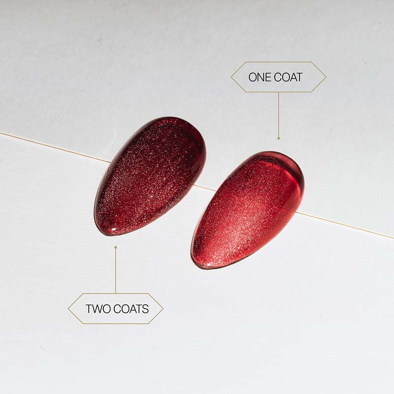 - Apply a layer of Astral Gel Couleur. If using a Cat Eye finish, use the Aprés Magnet Wand or any magnetic tool to arrange shimmers as desired. Note: Aprés Magnet Wand is not included, and must be purchased seperately.