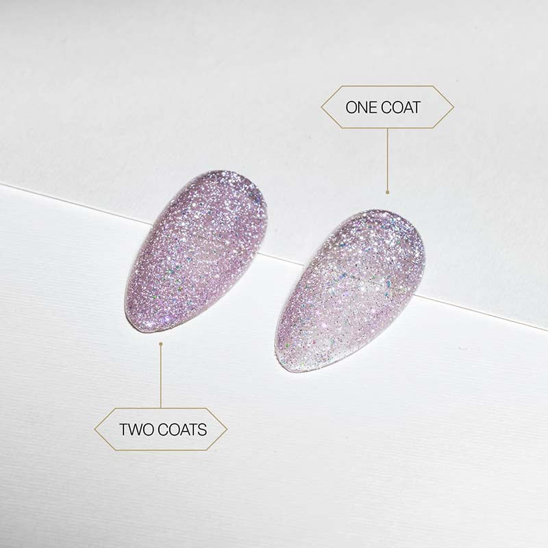 Aprés Astral Gel Couleur is a collection of 40 shades in 4 light-refracting, otherworldly finishes—Flash Glitter, Pearlescent, Velvet, and Shimmer Cat Eye. These streak-free, self-leveling formulas leave a unique energetic signature on the nail, empowering you to create looks that resonate on a spiritual level.