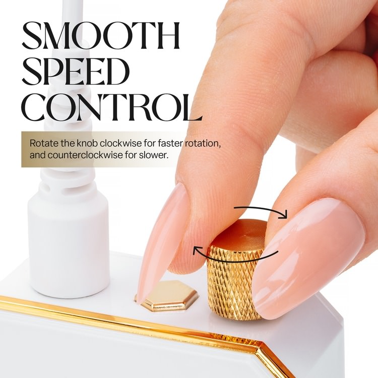 - After connecting the handpiece to the E-File machine, turn on the rotary knob. A “click” sound will indicate the E-File machine has turned ON, with the LED screen lit up.
