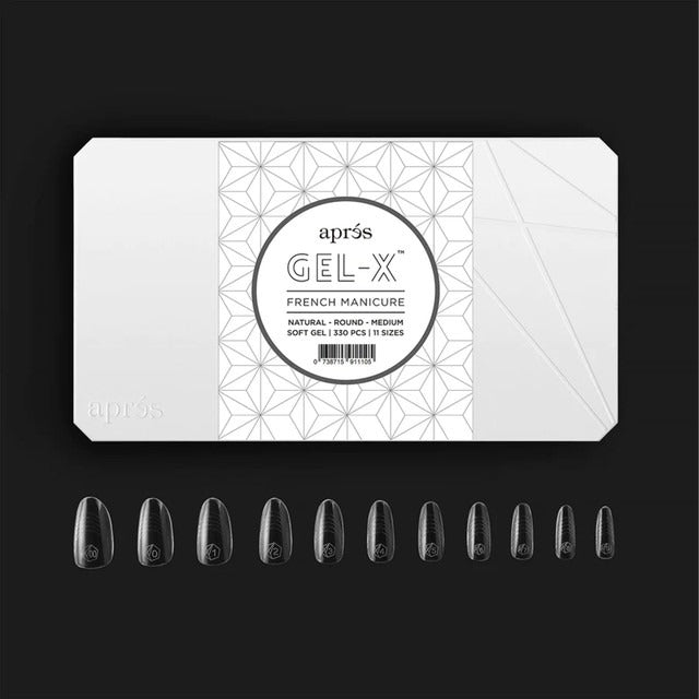 Apres French Manicure Gel-X Tips (Natural Round Medium) 330pcs Box - 10 Sizes