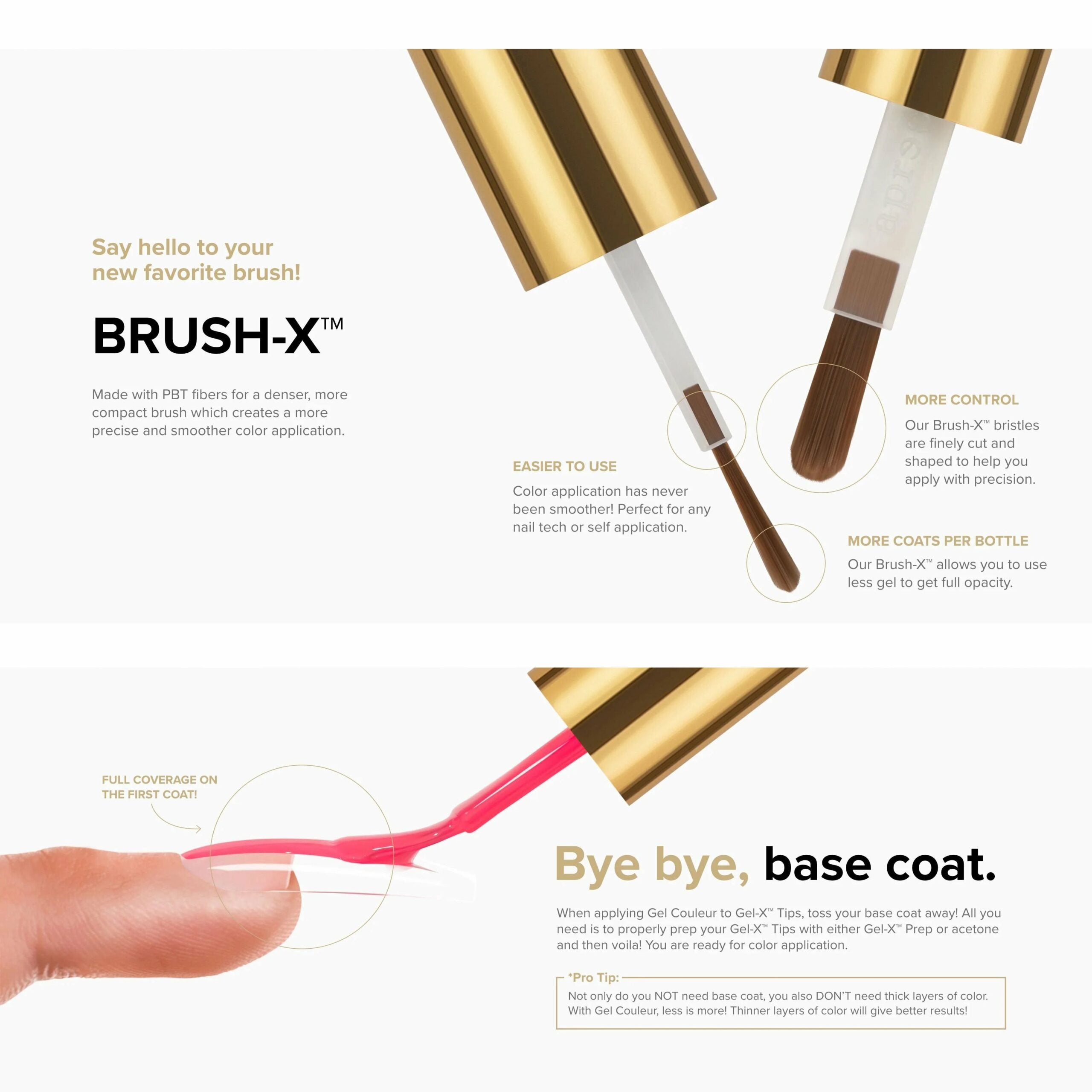 Apres Gel Couleur offers a smooth, highly pigmented formula that provides amazing colour payoff. But Gel Couleur takes it a step further by also providing the perfect tool along with the perfect colour. Included is our completely revolutionary in-bottle Brush-X that is both a convenient tool for pros and a helpful aid for DIYers.
