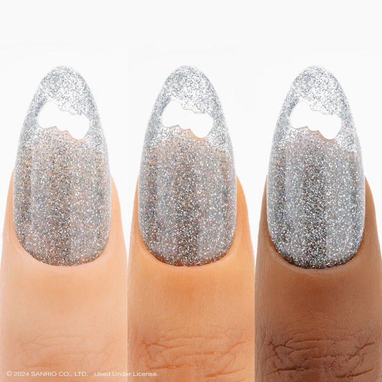- Apply a layer of ultra reflective Hello Kitty® Flash Glitter Gel Couleur and cure in an LED light for 30s. Finish with Aprés Non-Wipe Top Gelcoat and you’re ready to shine bright all day with your besties by your side.