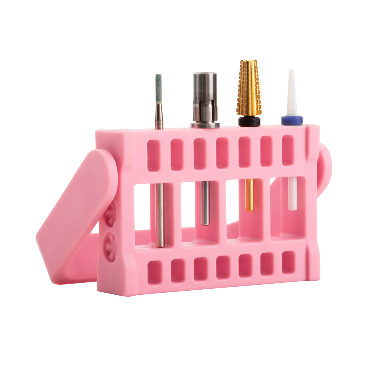 Convenient, compact, and comes in an array of fun colours. This case will not only hold all your bits in place but it will also act as a handy stand. When put in the locked position, all the bit are safely encased in this holder. When put into the unlocked position, the holder acts as a convenient stand that props up all your necessary bits for each reach.