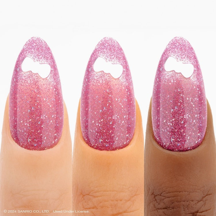 - Apply a layer of ultra reflective Kuromi™ Flash Glitter Gel Couleur and cure in an LED light for 30s. Finish with Aprés Non-Wipe Top Gelcoat and you’re ready to shine bright all day with your besties by your side.