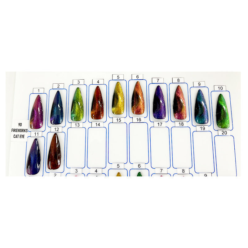 The LUXX 9D Fireworks Cat Eyes Gel Polish range assures long lasting wear with a 9D holographic fireworks effect that resists fading and chipping. These cateye gel polishes has more possibility and creativity, the effects depends on the magnetic stick and the way it is applied. This soak-off gel polish can be applied as a two or three step system and will cure in 60 seconds under LED lamp or 2 minutes under UV lamp.