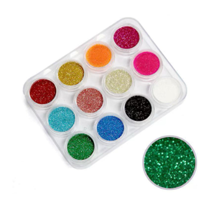 LUXX Chrome Nail Powder Colour 12pc Set #01 (Glitter)