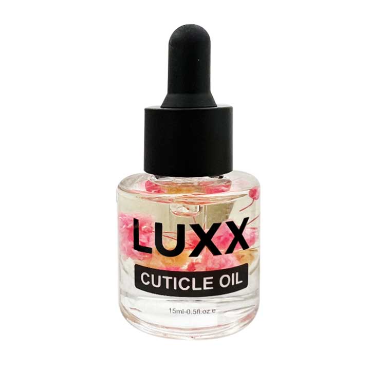 The LUXX Cuticle Oil are infused with real dried flowers and nourishing mineral oils while providing a light floral scent. The best natural cuticle oil treatment. This will strengthen, hydrate and restore essential oils in the skin surrounding the nail plate and cuticles.