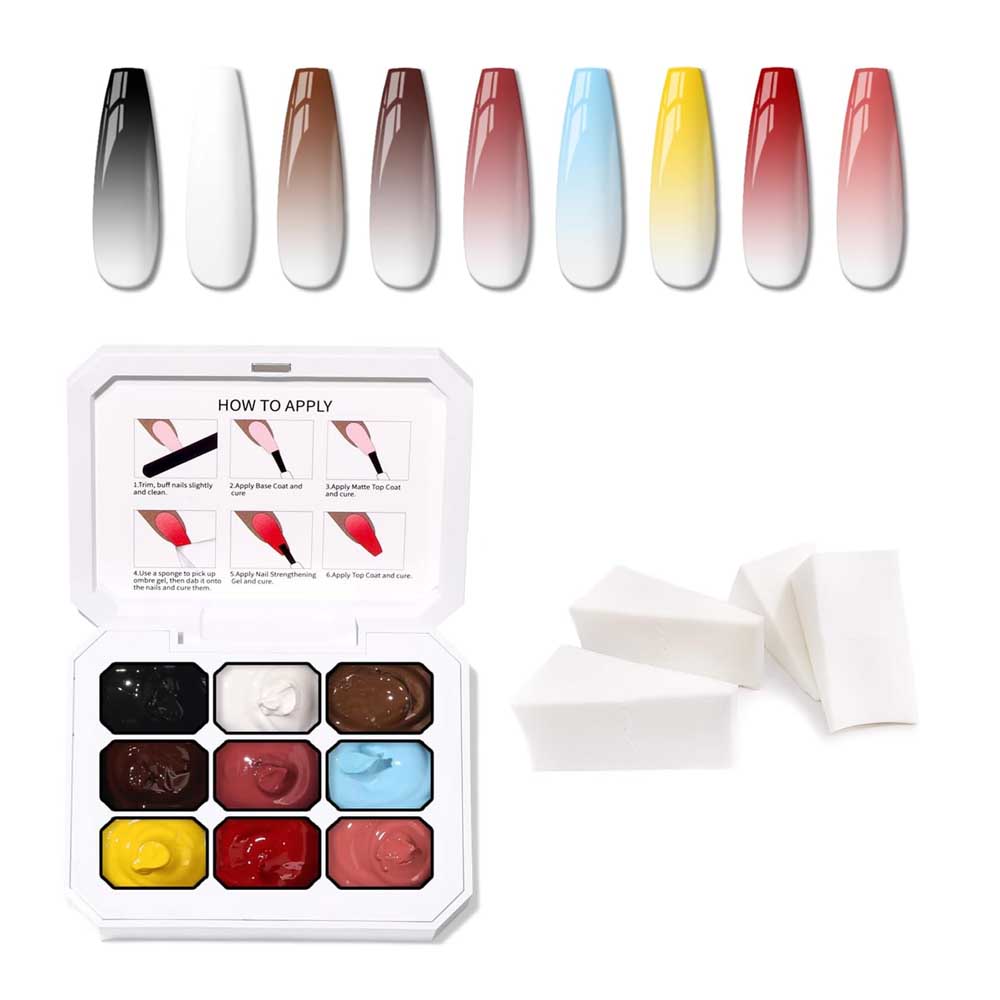 LUXX Ombre Gel Paint Set (9 Colours) with 4 Sponges