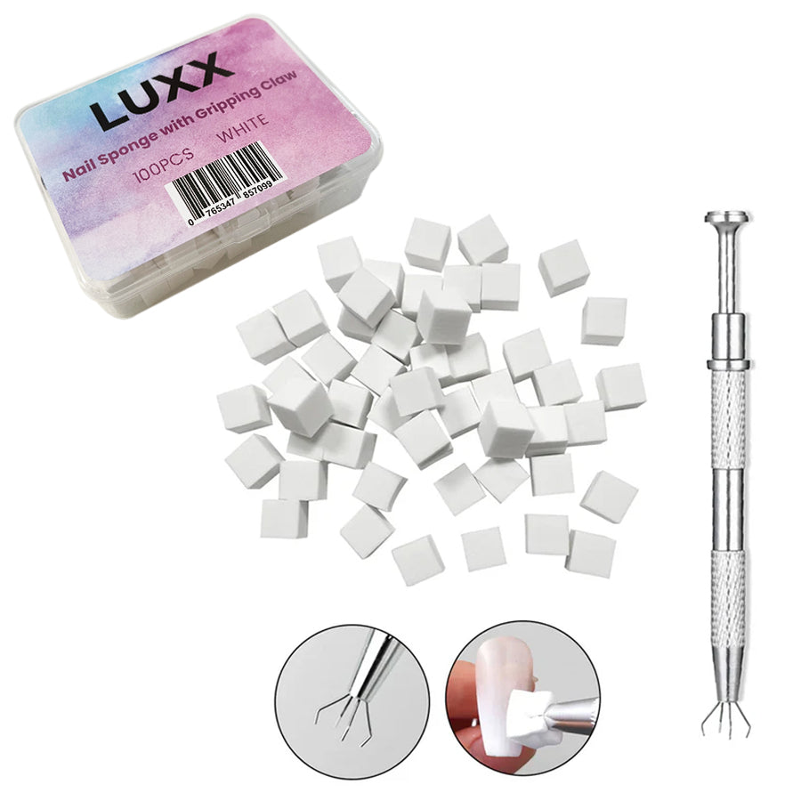 LUXX Nail Art Sponge Cubes White 100pcs with Gripping Claw (for Ombre & Chrome)