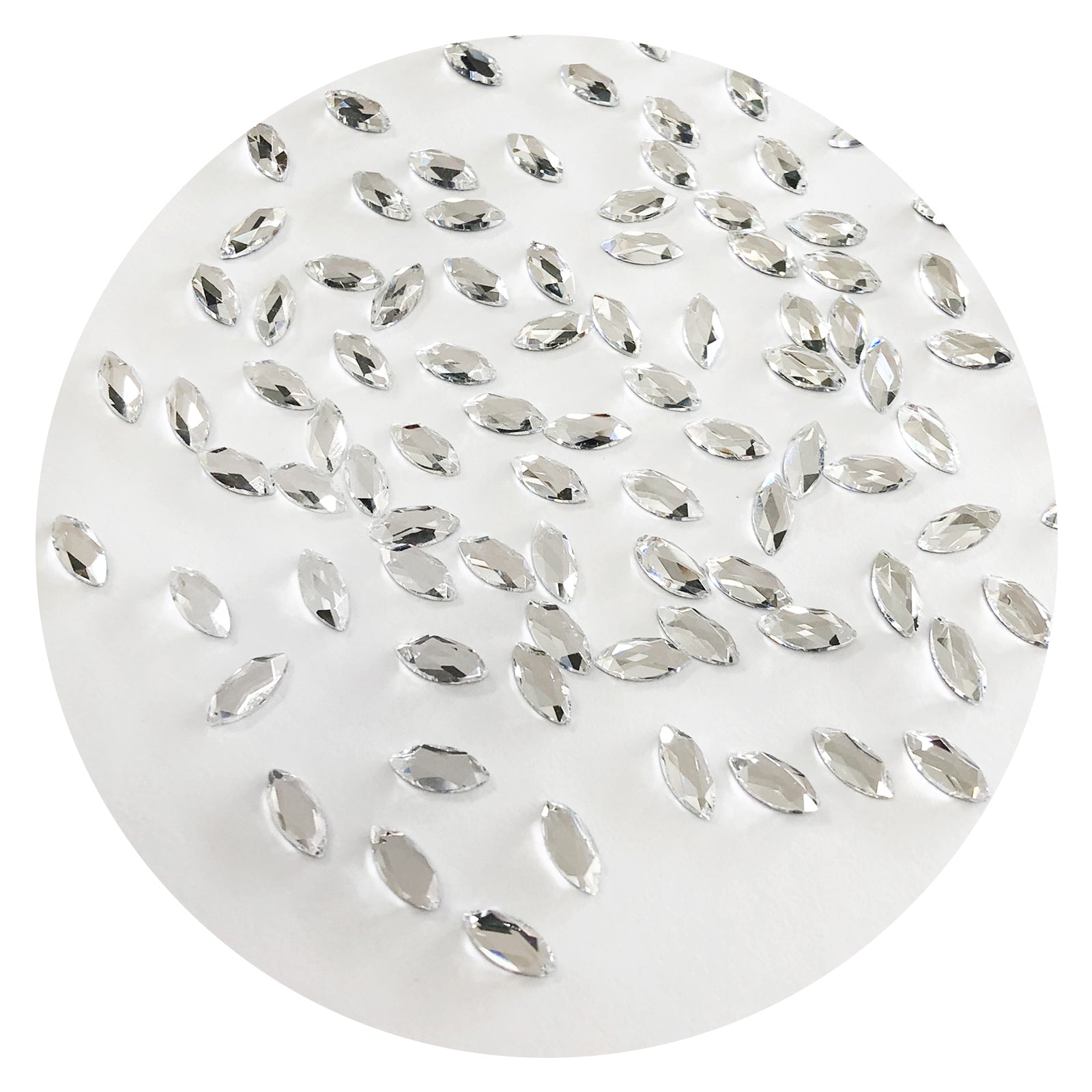 High-quality white resin flatback crystals sparkle and shine! These would be ideal for wedding nails and other special events! Our selection of rhinestones have an crystal clear coating that gives a sparkling and shining effect in different types of lighting. They offer a flat backing so that they can be easily glued to your nails using tip glue or a UV Clear Top Coat. Comes in various shapes and sizes. Each rhinestone comes in 1, 2 or 3 individual pieces only (as indicated).