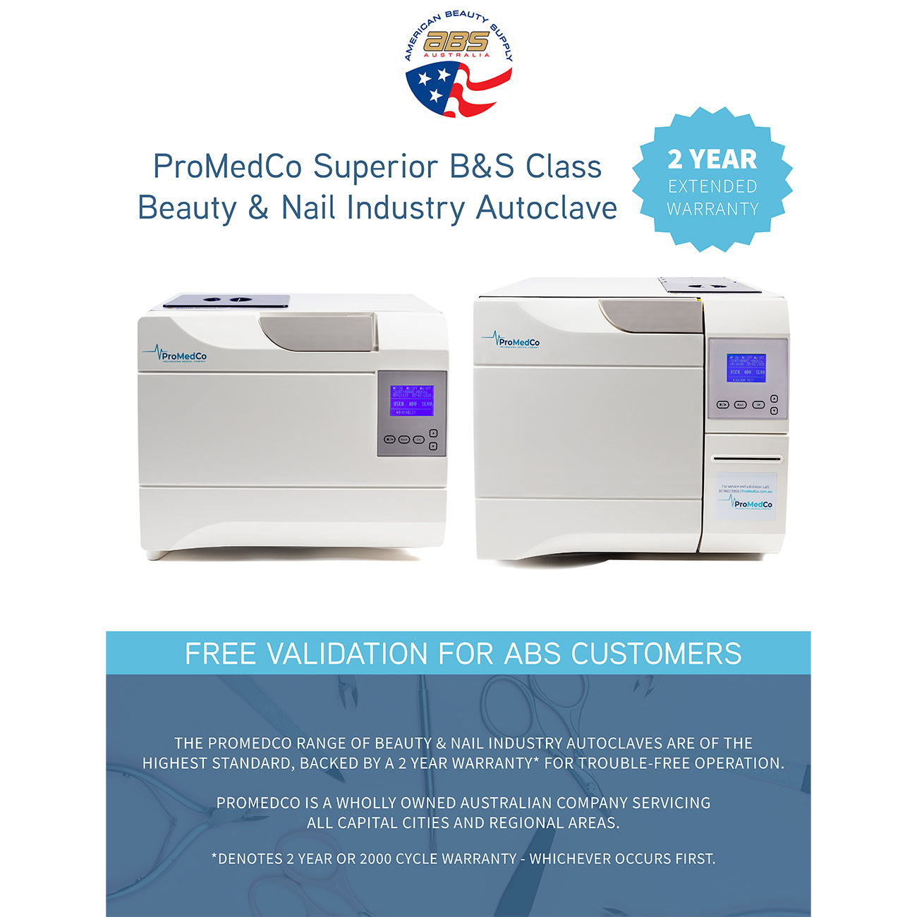 ProMedCo Autoclaves are manufactured to the highest standard and are backed by a generous two-year warranty for trouble-free operation. Fully compliant with council and regulations. All Autoclaves come with a 12 months validation certificate, free delivery, starter kit of pouches/indicators and a sterilisation log book. Designed in Australia with German parts. Onsite training where possible along with unlimited telephone support by ProMedCo.